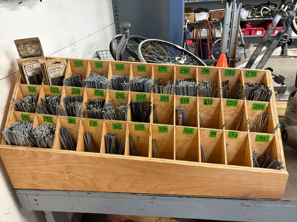 A new spoke box was designed by the Bicycle Shop and constructed by the Carpentry Shop. It should significantly reduce the time to repair wheels with broken or damaged spokes.